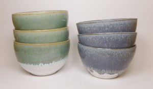 grès bols émaux aux cendres vert, bleu et blanc